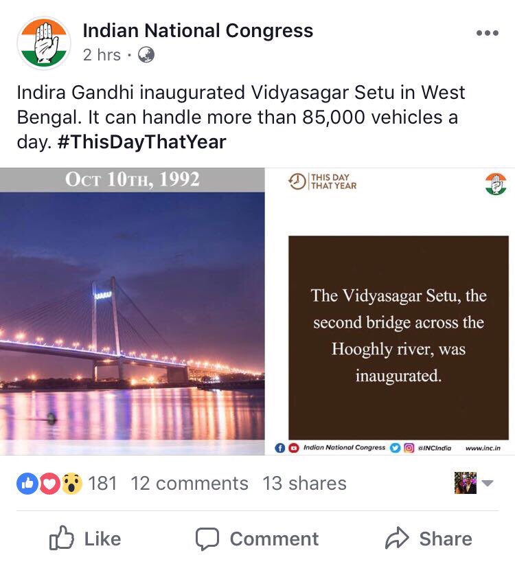 आज 10 अक्टूबर है, गाँधी-नेहरू परिवार की स्तुति के तहत कांग्रेस ने अपने आधिकारिक फेसबुक पेज पर ये पोस्ट डाला जिसमे कांग्रेस ने बताया की