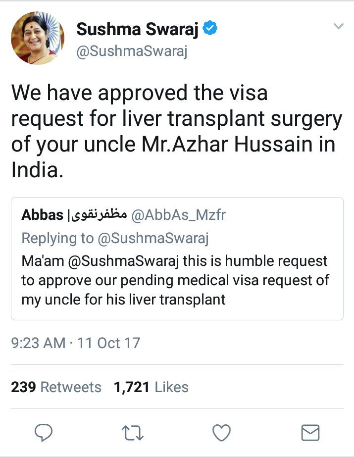 उसी भारत के वीजा के लिए ये सुषमा स्वराज को टैग कर प्रार्थना कर रहा है